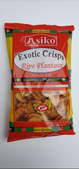 Foods Exotic Crisps Salted Ripe Plantain - Slightly Salted 2.65oz(75g) Price: £ 1.18 ASIKO Add to basket Goto Basket